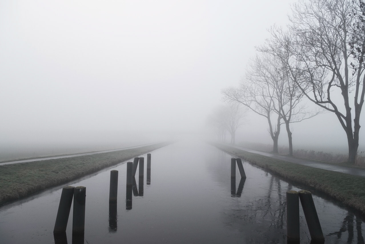 The fog settled over the fields
